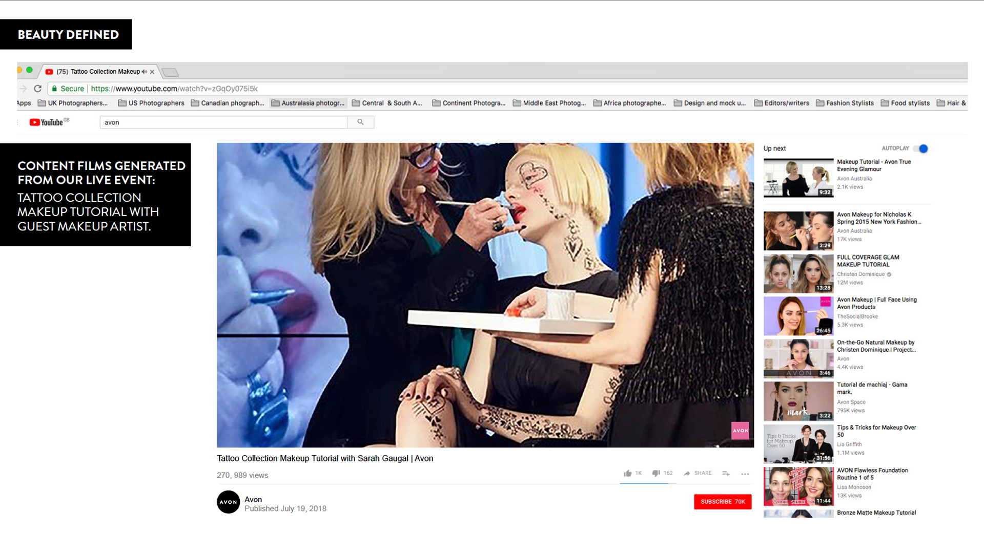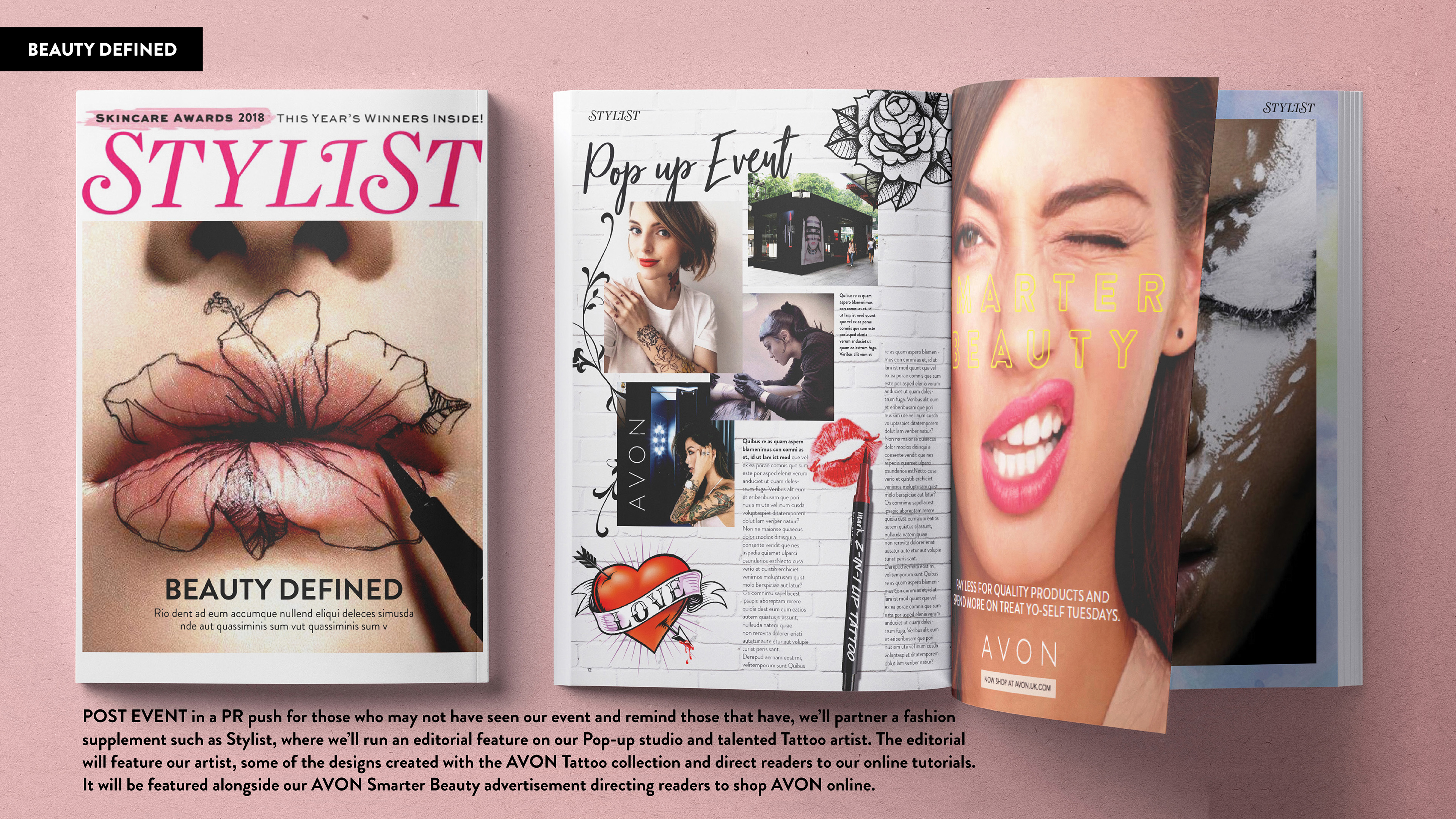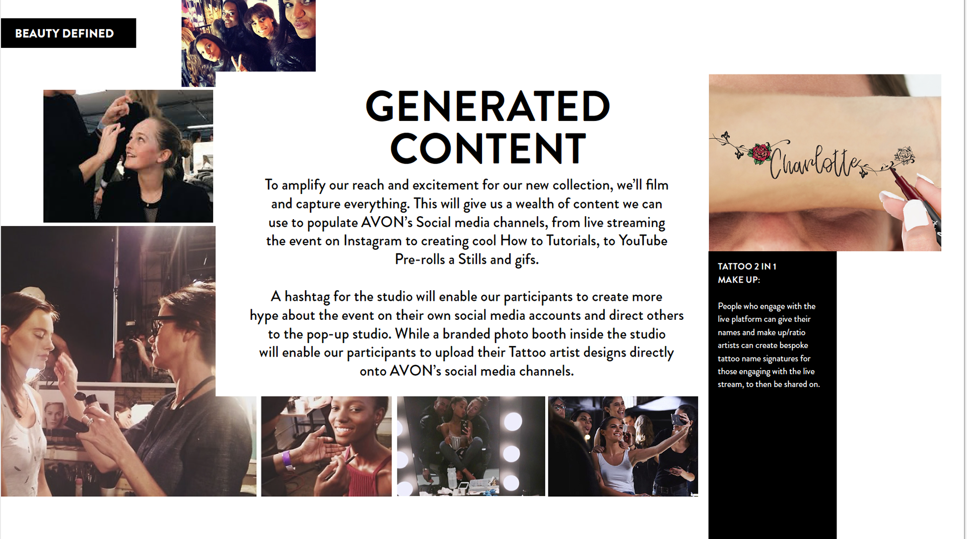 Following the successful Smarter Beauty campaign, I then worked on a new product launch for Avon beauty "Tattoo" where we came up with a pure digital campaign idea led by an exclusive Pop-Up event with tattoo artists and celebrity make-up artists.